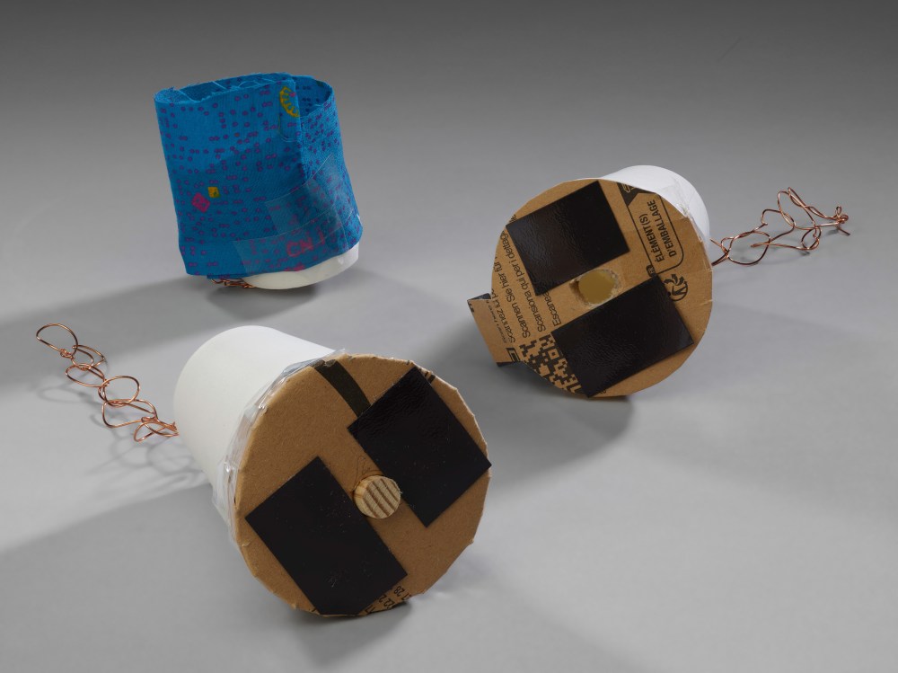 We learnt about inclusive design in the V&A collection and had an ‘ideas door’ in the studio where we wrote all our ideas and voted on our top three in order to choose one inclusive design product to make. We started by creating a few different prototypes of adaptive designs, including fidget toys, jewellery with an accessible magnetic clasp and a locket for medication. The product that we chose to develop further and make was an arm-worn water bottle designed for a member of That’s Effort! They walk with a stick and asked for a bottle that they can use hands-free and that does not impact their balance or mobility.