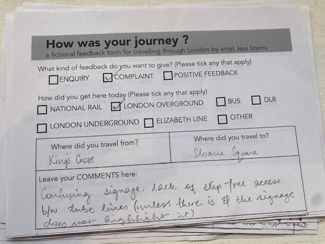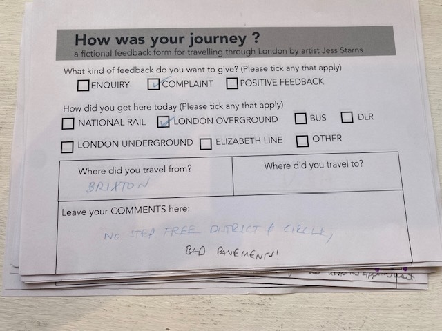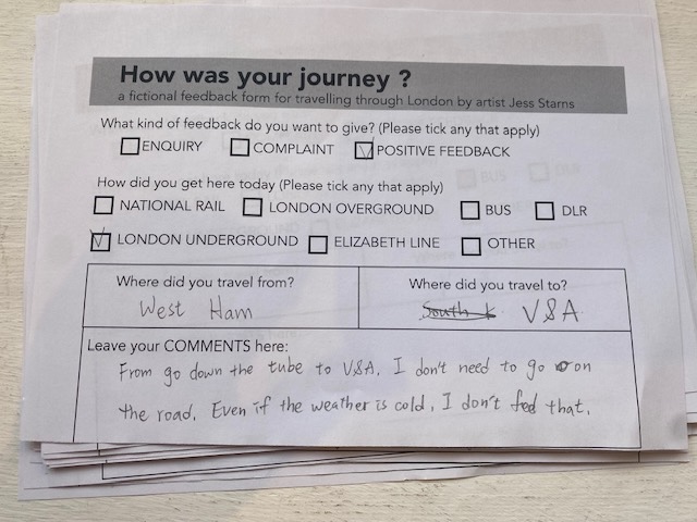 Friday Late: Radical Kinship. I created an intervention called ‘How was your Journey?’ where I had over 60 conversations with visitors about our journeys to the V&A and about access to travel whilst having a rest at the temporary bus stop. Some visitors stopped for a chat, some for a rest and others asked actual travel questions.