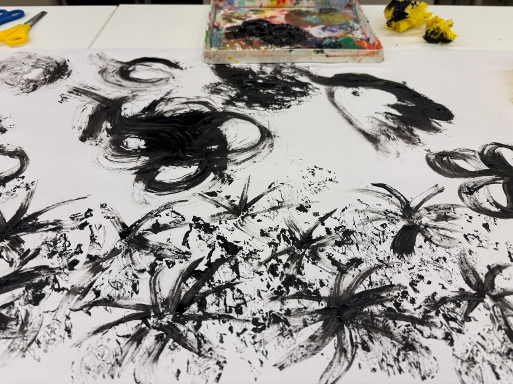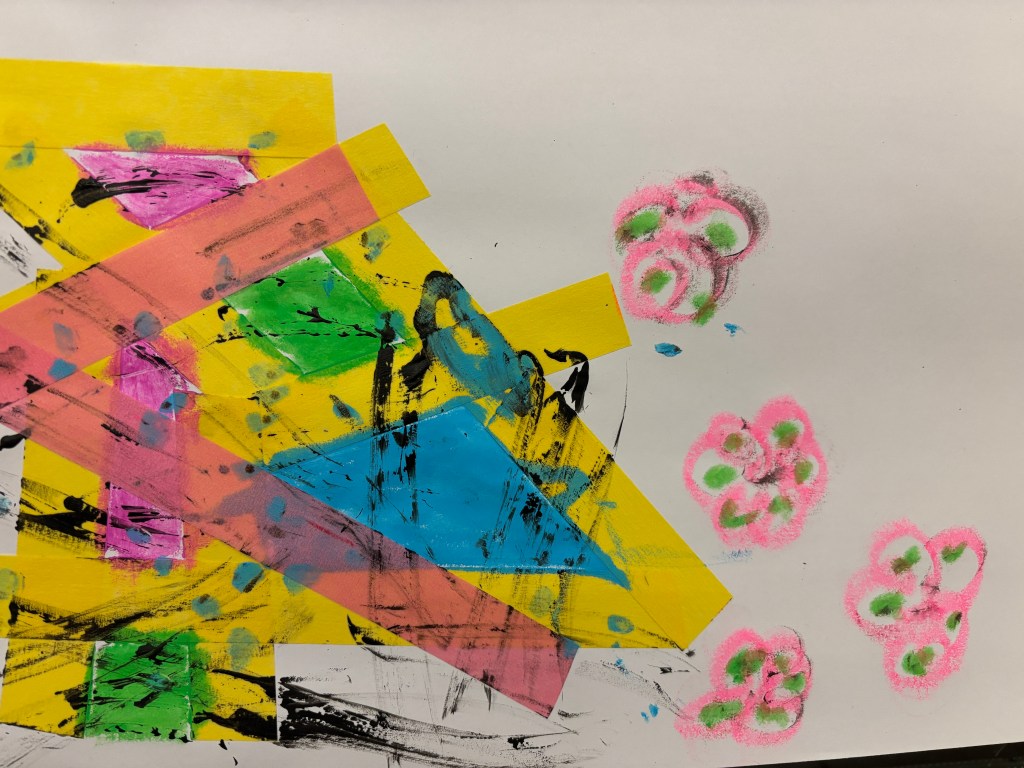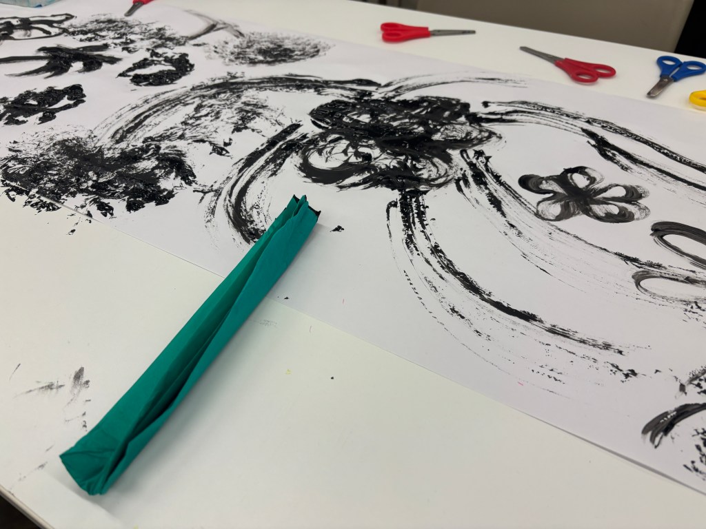 Home education day: I facilitated a workshop where we painted with tissue paper and made own painting tools in the style of Nerys Johnson.
