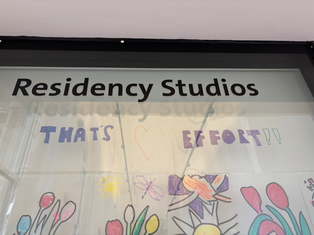 Open Studios: over the year we had monthly open studios where I designed activities for people to drop in. During the year we slowly turned my studio into a floral greenhouse inspired by the artworks of Nerys Johnson, creating a flower garland, stained glass window and wallpaper.