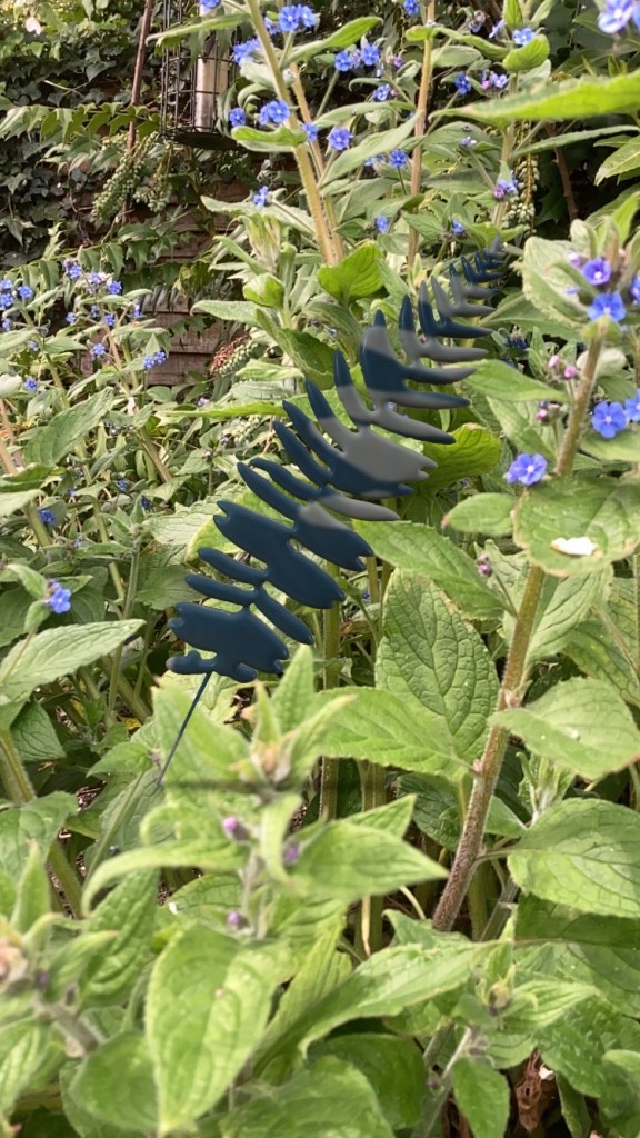 Polypodium vulgare is a print of one fern leaf. I’ve edited the print taking the outline of the fern leaf using Adobe Illustrator to turn 3D and I’ve placed the original image as a material on top. The fern leaf leans to one side and is cyanotype blue with patches of lighter blue which is the outline of the fern leaf in the print.