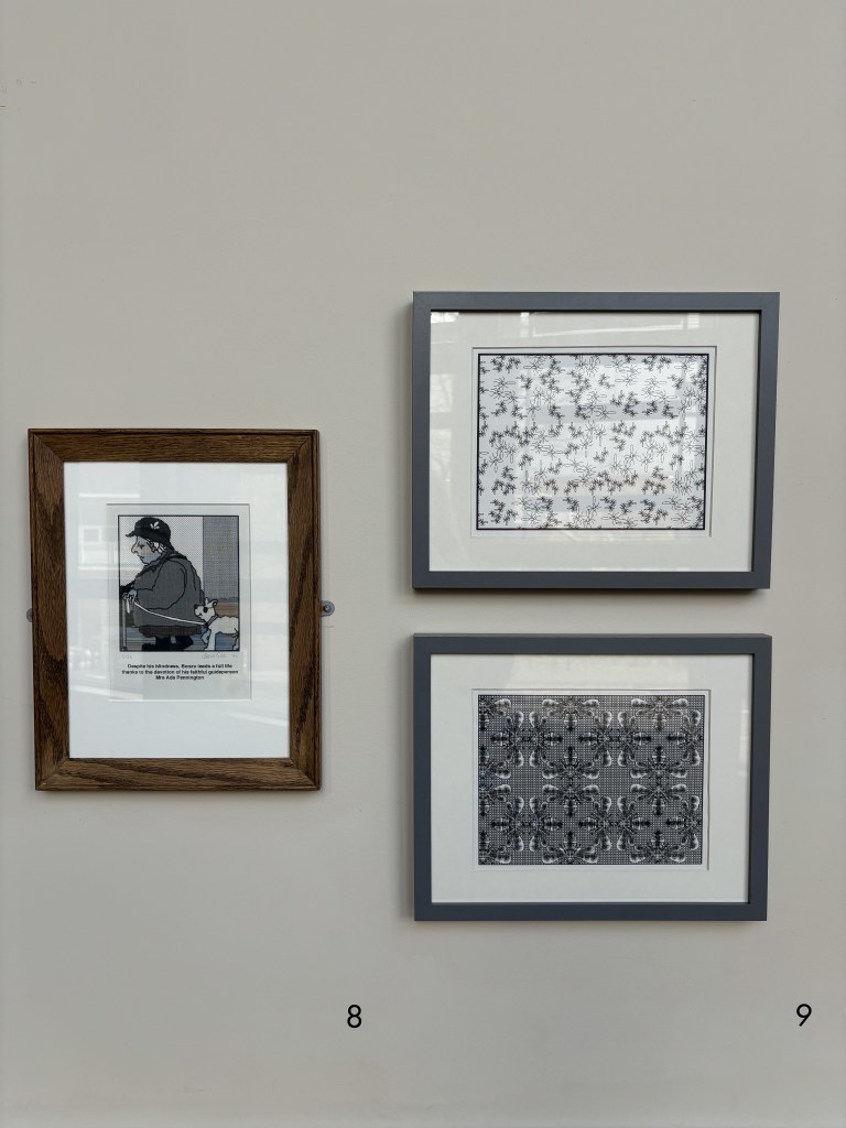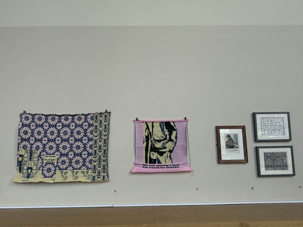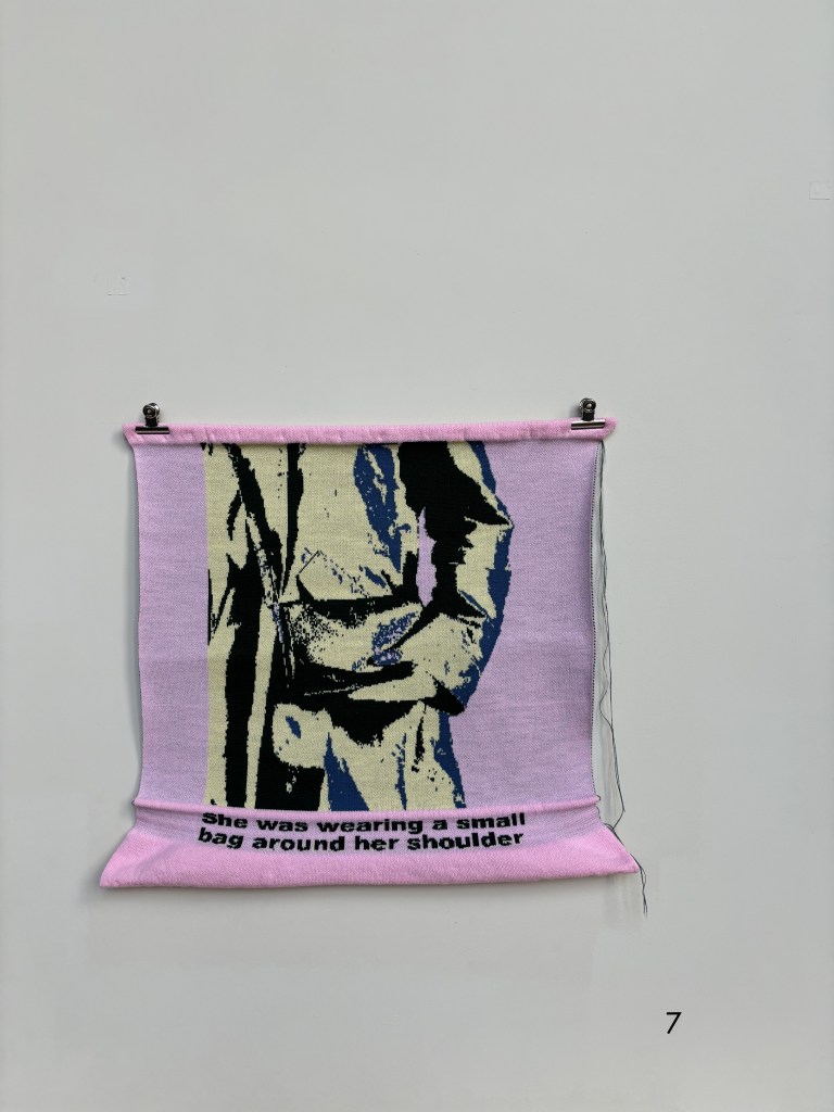 Also included in the exhibition are two tapestries using a Stoll machine, created in response to Cribb’s work. ‘First attempt’ which is a collaboration of mine and Cribbs work and ‘She was wearing a small bag around her shoulder’ is in the style of Cribb and is a direct quote from my PIP assessment.
