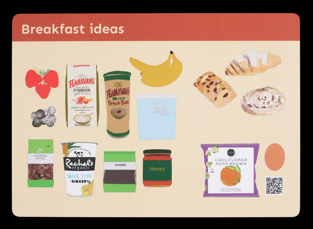 During my Adobe Creative Residency at V&A Museum I also wanted to explore occupational therapy as a design process. I collaborated with an occupational therapist to create the ‘Cookbook that’s not a cookbook’. The cookbook is ‘designed for one’ and aims to support dexterity which is involved in cooking and eating, not being able to eat certain foods, fatigue, executive function and sequencing information. There are around 160 digital illustrations, 28 recipes and QR codes to how to films. Also includes a template for people to adapt to meet their own requirements. I also made plates to accompany the cookbook about food avoidance and show images of food related objects in the V&A collection.