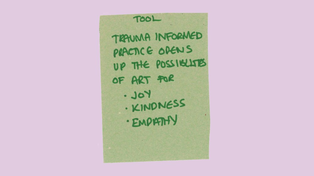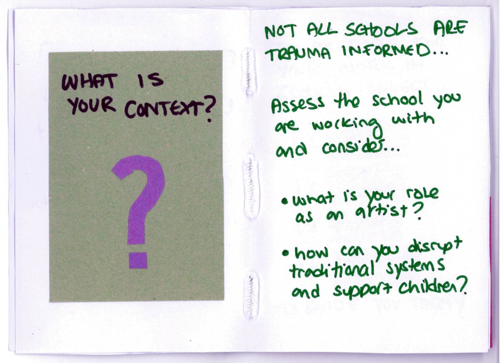 During my Adobe Creative Residency at the V&A museum I organised trauma informed schools training delivered by Trauma Informed Schools UK. I invited 5 artists and creatives who didn’t like school but want to work with schools as creative practitioners to create a toolkit for other artists.