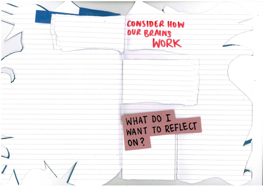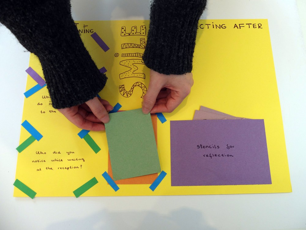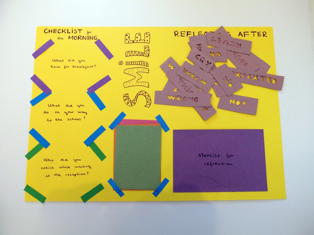 Checklist for the morning and reflecting after (Zsofia Hajdu) create your own checklist for the morning, what do you need to fill prepared? here they are cards to write and place your thoughts. What space do you need to reflect afterwards? create stencils to reflect with.