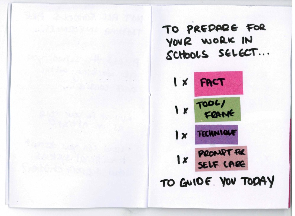 Prompt cards included inside Chris Webb’s ‘Be Kind & Stay Kind – prompts to support trauma informed practice.