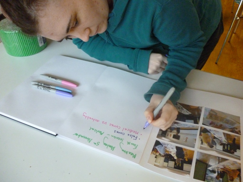 Throughout the research we kept a reflective journal where we wrote our thoughts from each session and pasted photographs to reflect over the following week.