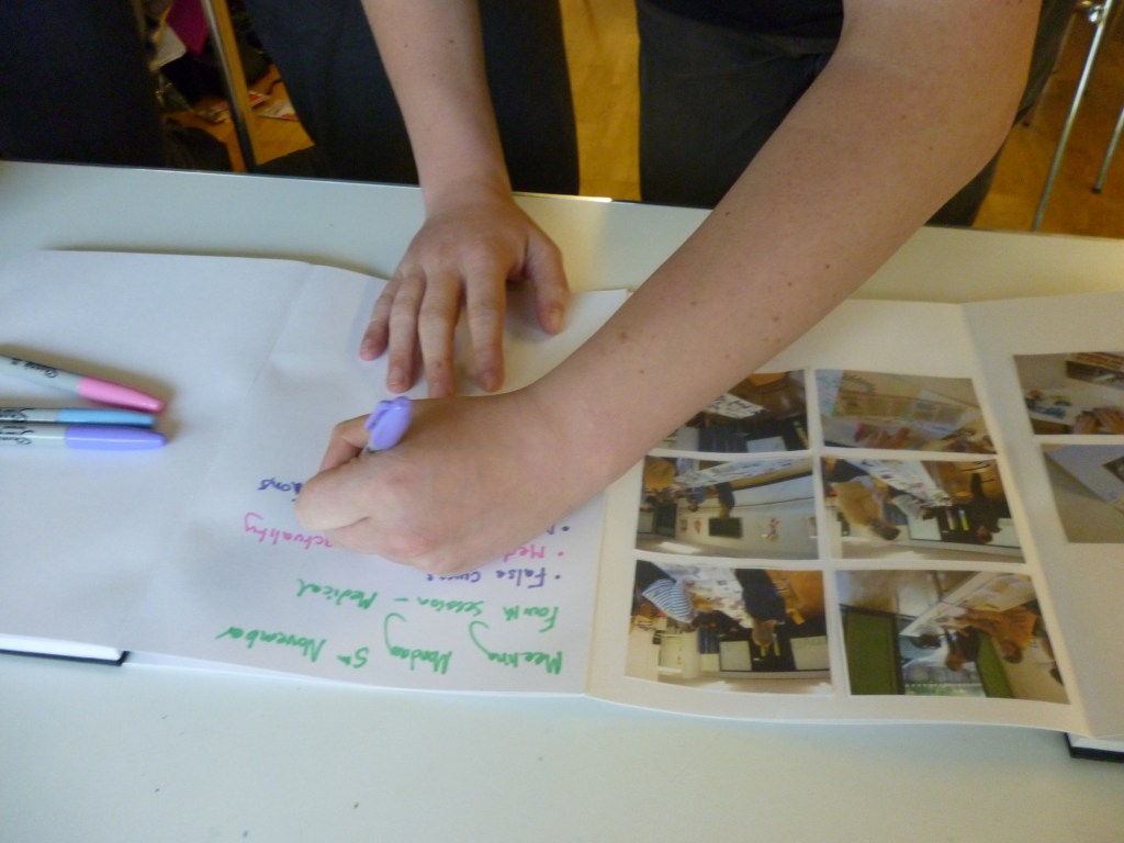 Press the ‘talking labels’ to find out more about the artworks displayed and take a look through the ‘talking book’ where you can see photographs of the artwork we made together during the research.